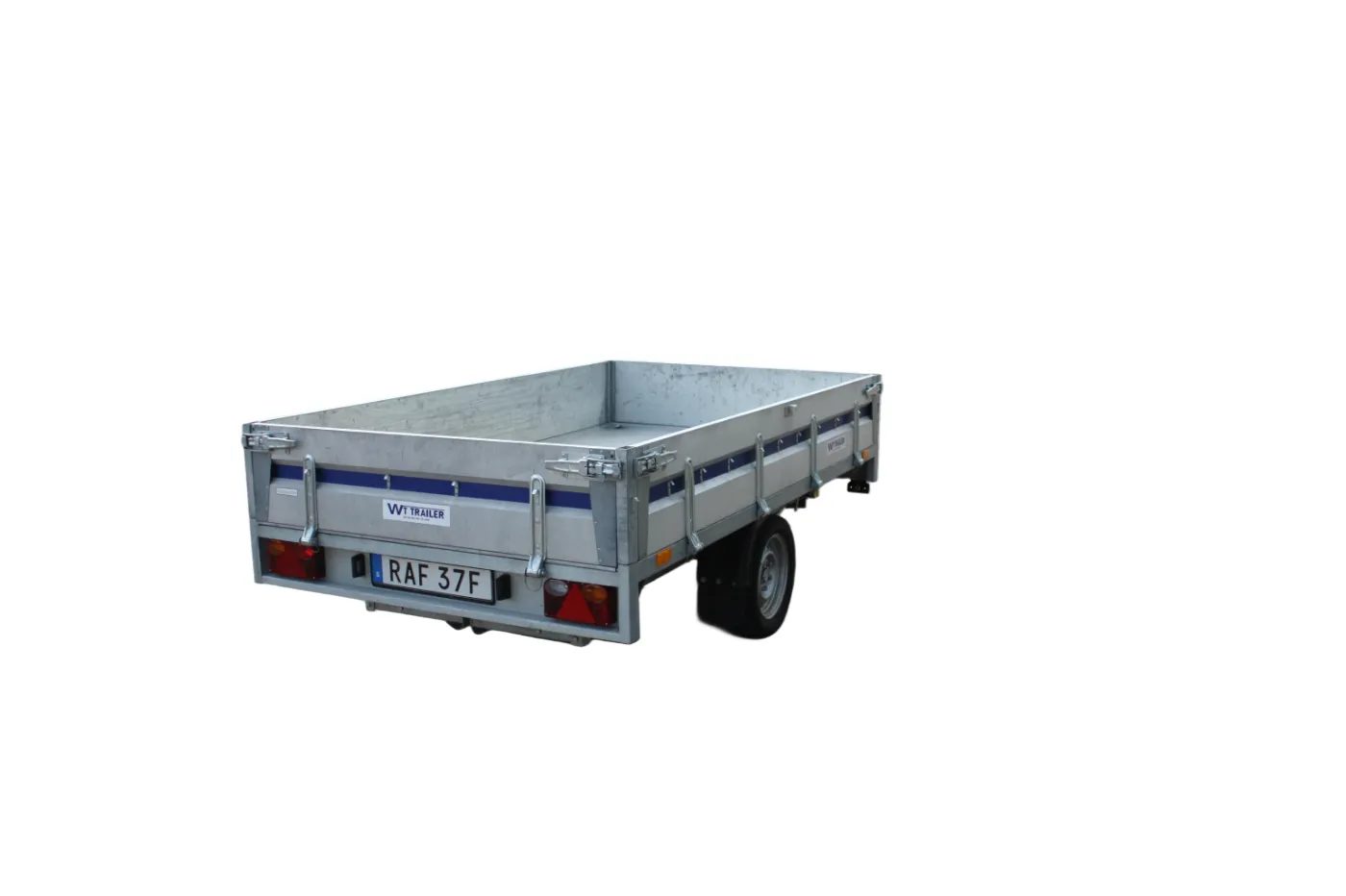 Proffs 252 Bromsat släpvagn totalvikt 750/1000/1200 eller 1300 kg med gallergrindar, Släpet har en 1300 kg axel