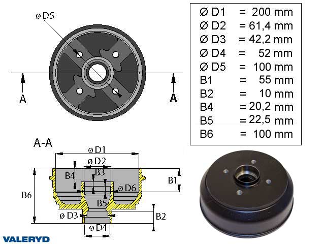 Släpvagn » Produkter » Tillbehör & Reservdelar till Släpvagn » Axel & hjulbroms » Trumma och lager » Bromstrumma » Bromstrumma 200×50 4×100 Knott mm-lager