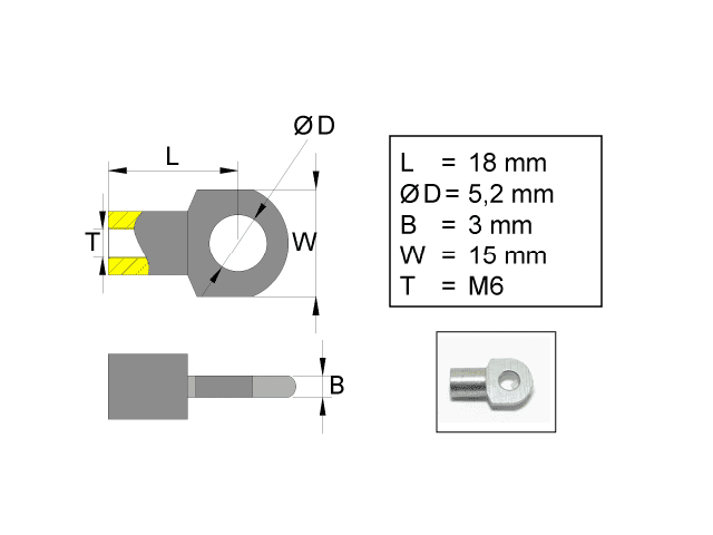 Släpvagn » Produkter » Tillbehör & Reservdelar till Släpvagn » Gasfjäder/ändstycken » Ändstycke » Fästögla för gasfjäder; L=18; M5, max 150N