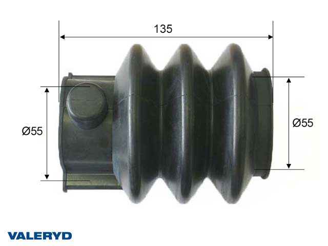 Släpvagn » Produkter » Tillbehör & Reservdelar till Släpvagn » Påskjut & kulkoppling » Reservdelar till påskjutsbroms » Gummibälg » Gummibälg passar till Knott/Avonride svart 55/55 L=135 Bredd/Höjd vid kulhandske = 83,4/93,2