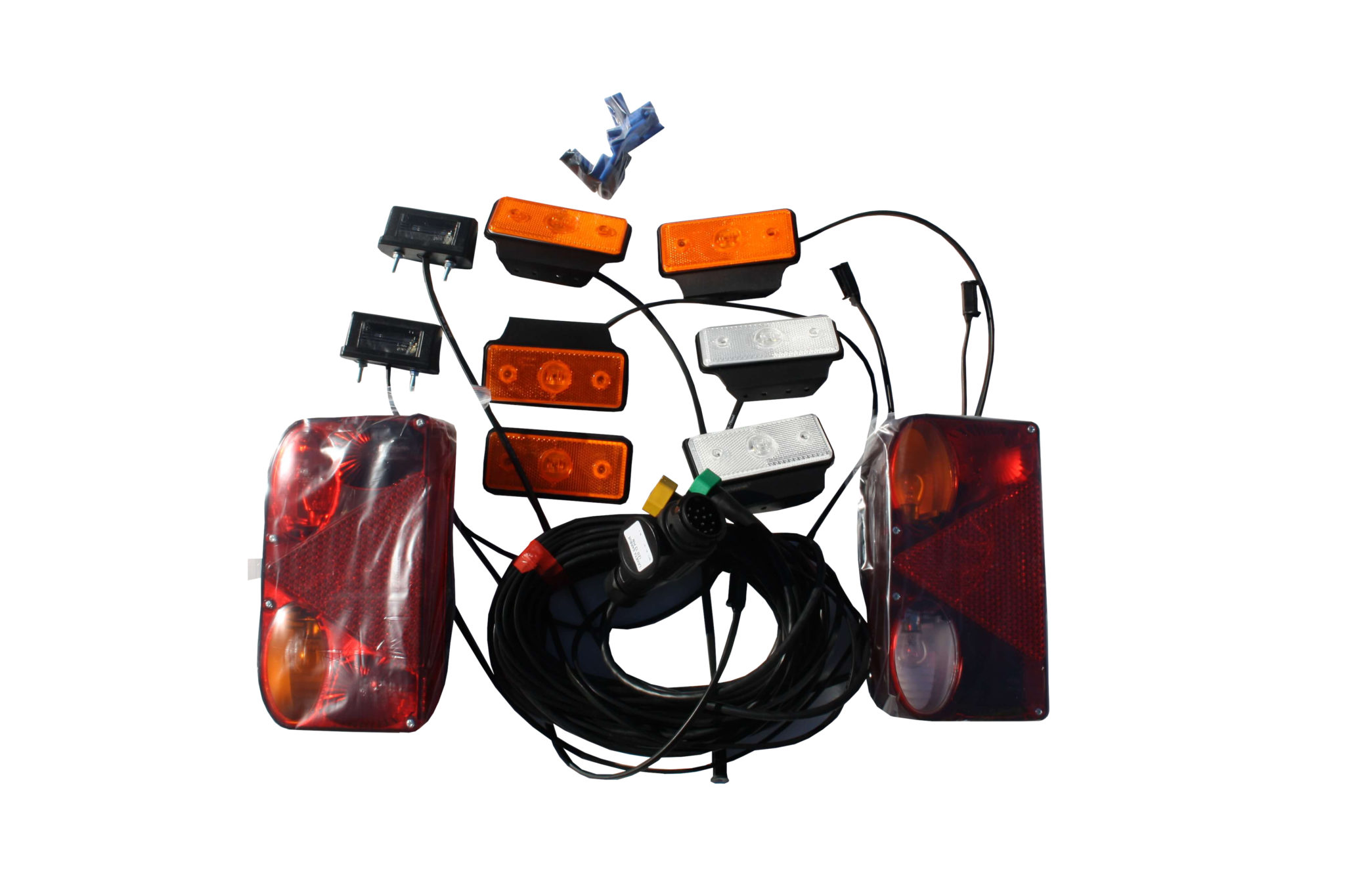 6,7m kabel med 6 positionsljus, 2 kompletta insatsbelysningar bak och Skyltbelysning