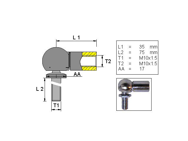 Släpvagn » Produkter » Tillbehör & Reservdelar till Släpvagn » Gasfjäder/ändstycken » Ändstycke » Vinkelkulled; L=35; M10